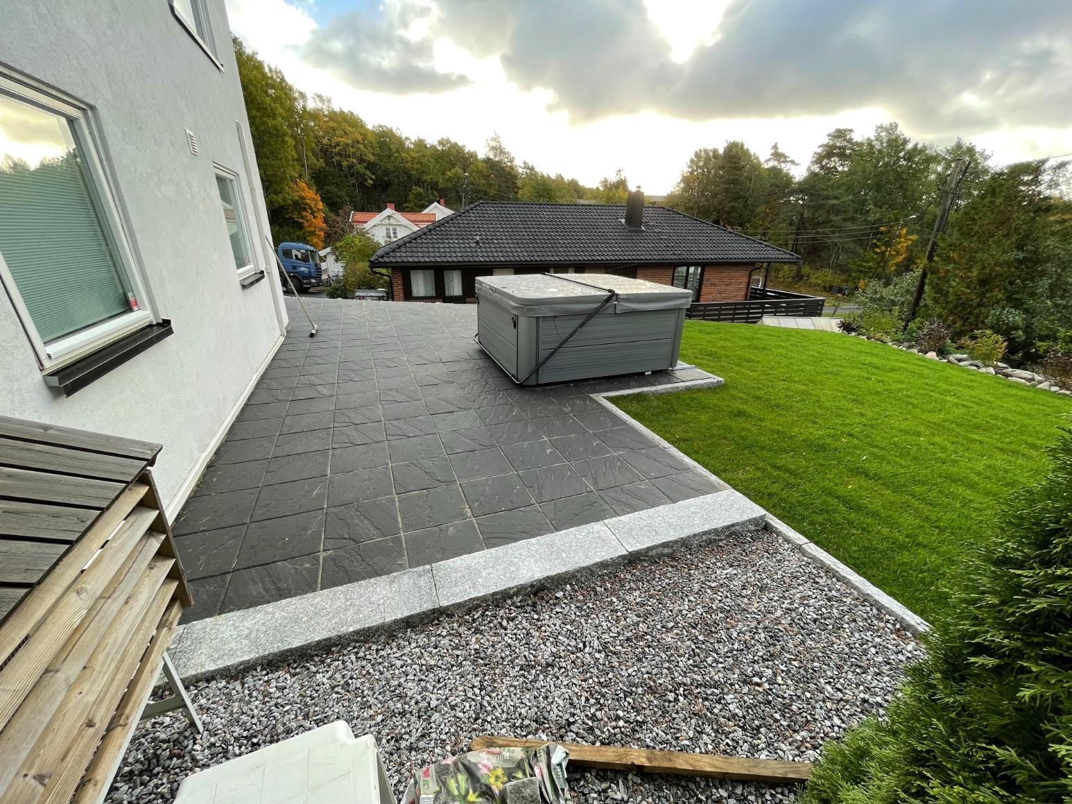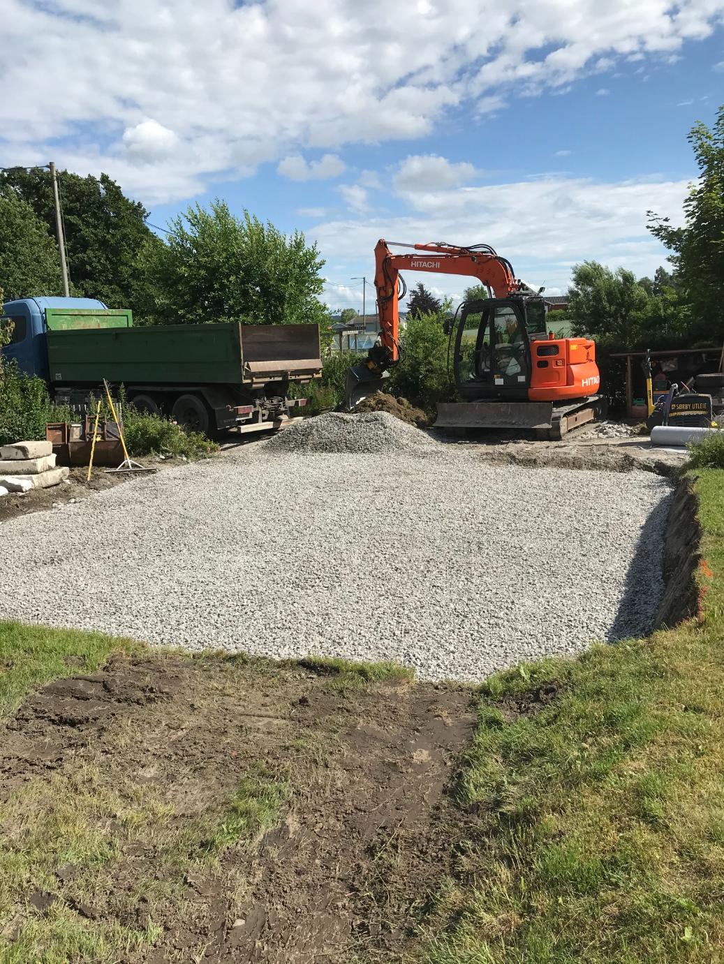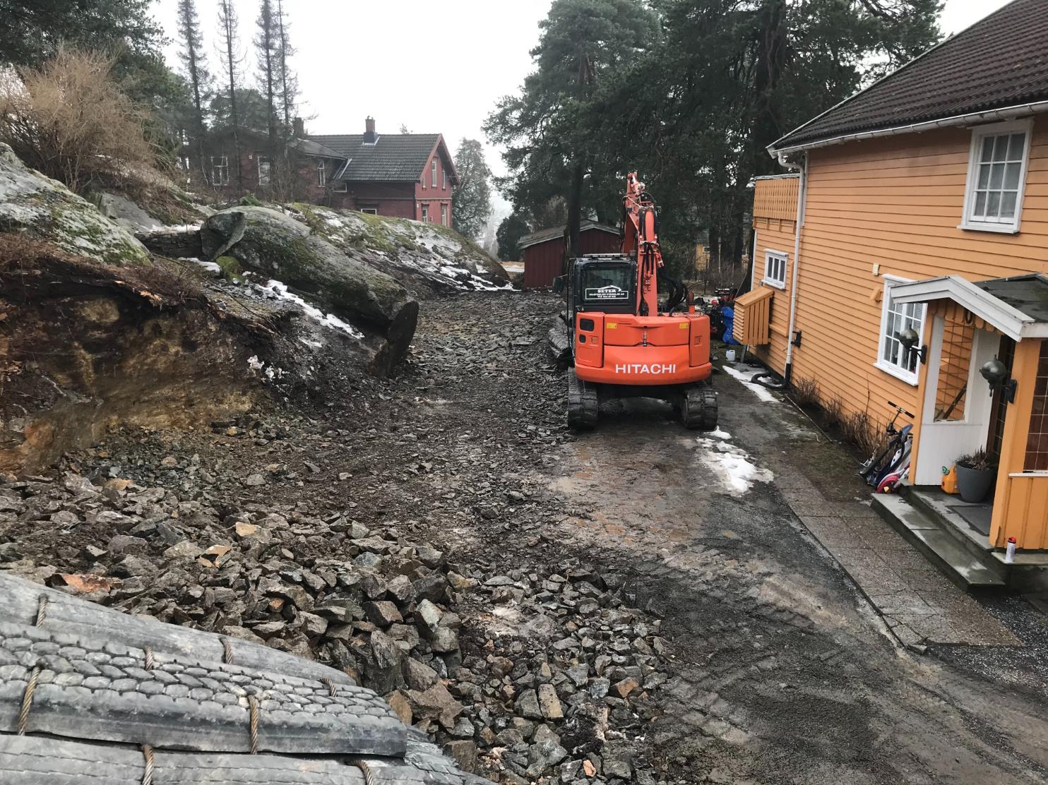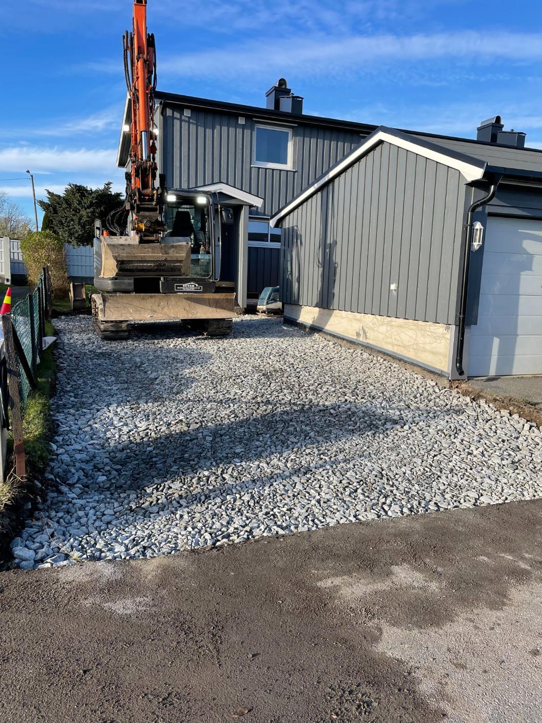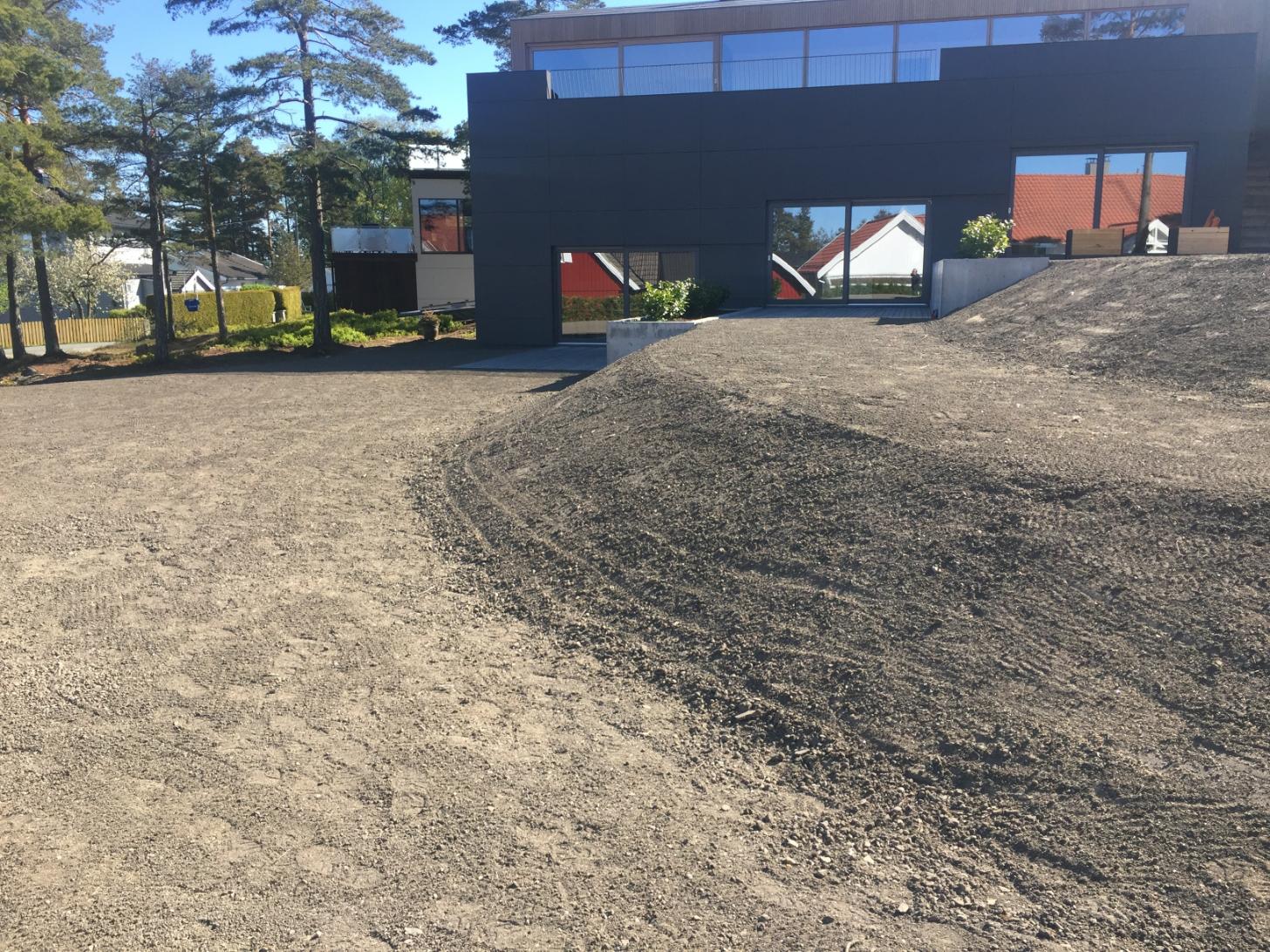 Vi utfører alt innen planering av tomter, og arbeid relatert til dette. Vi er med fra den første utgravingen til ferdigstillelse av uteområdet.