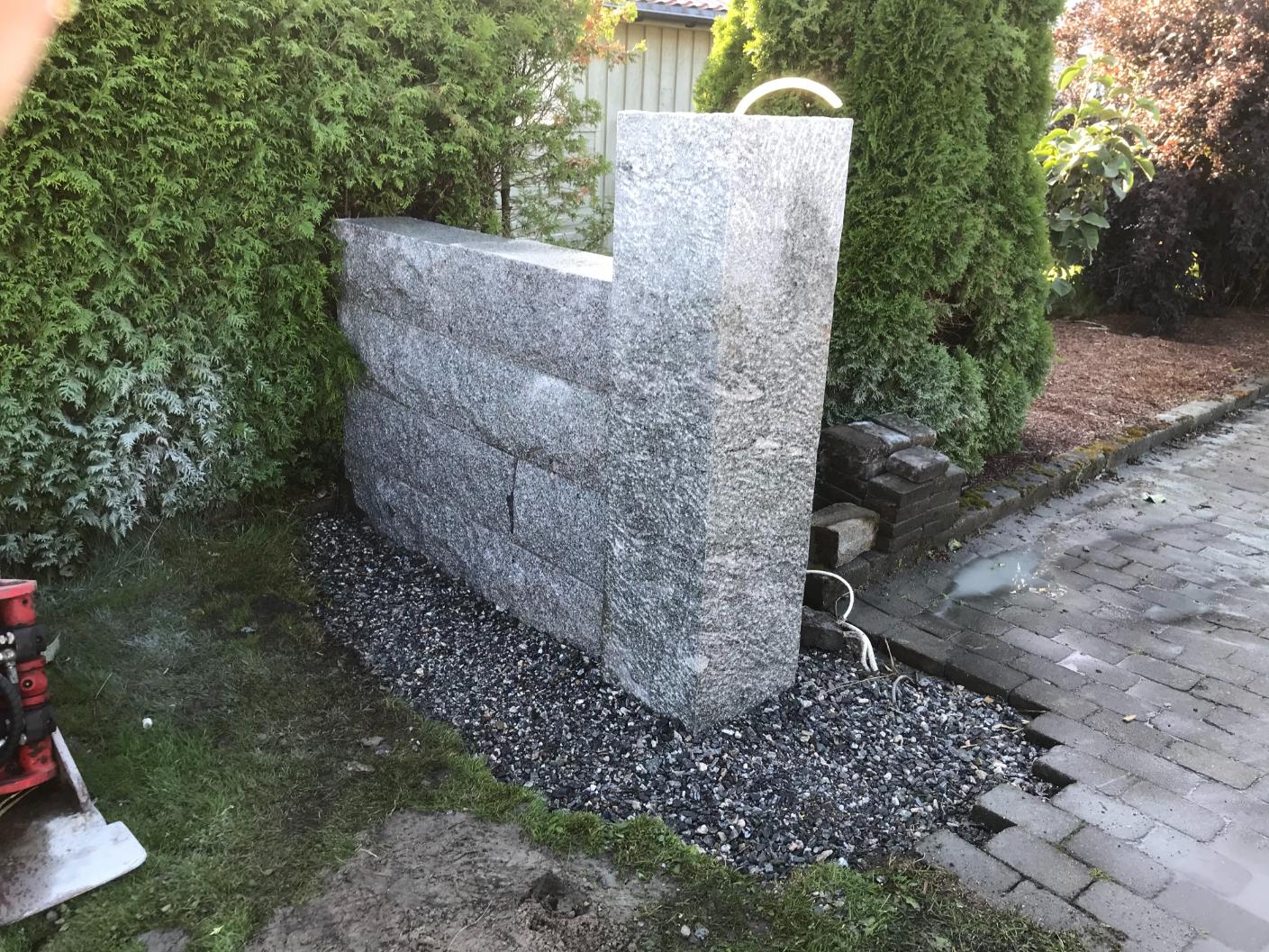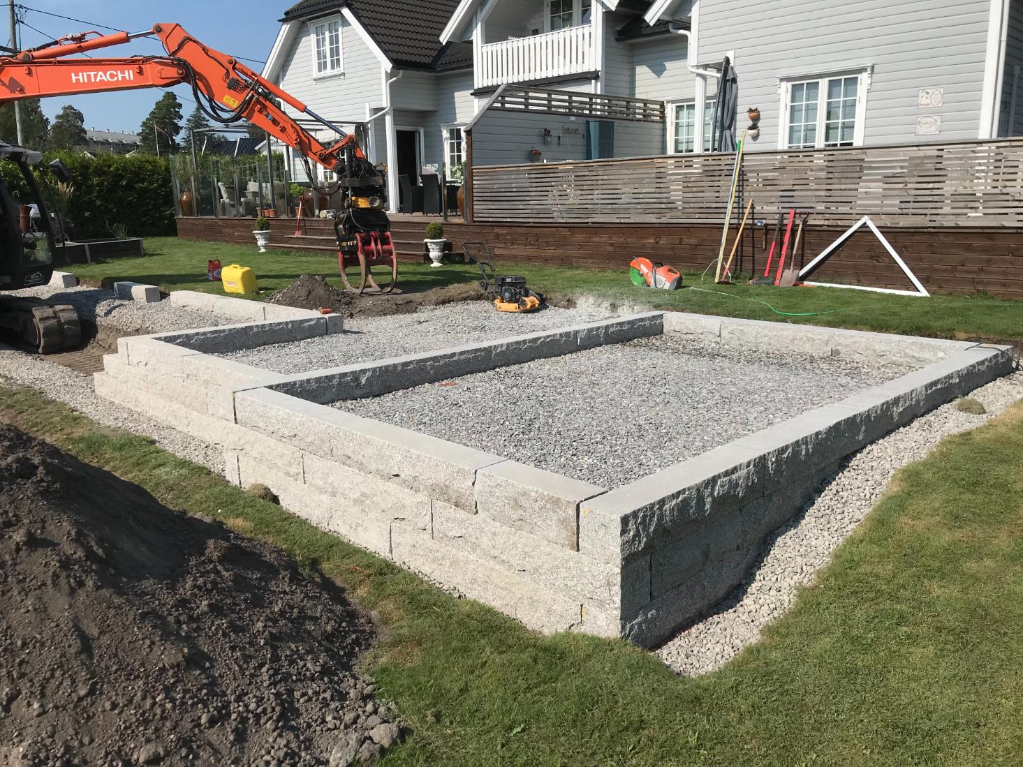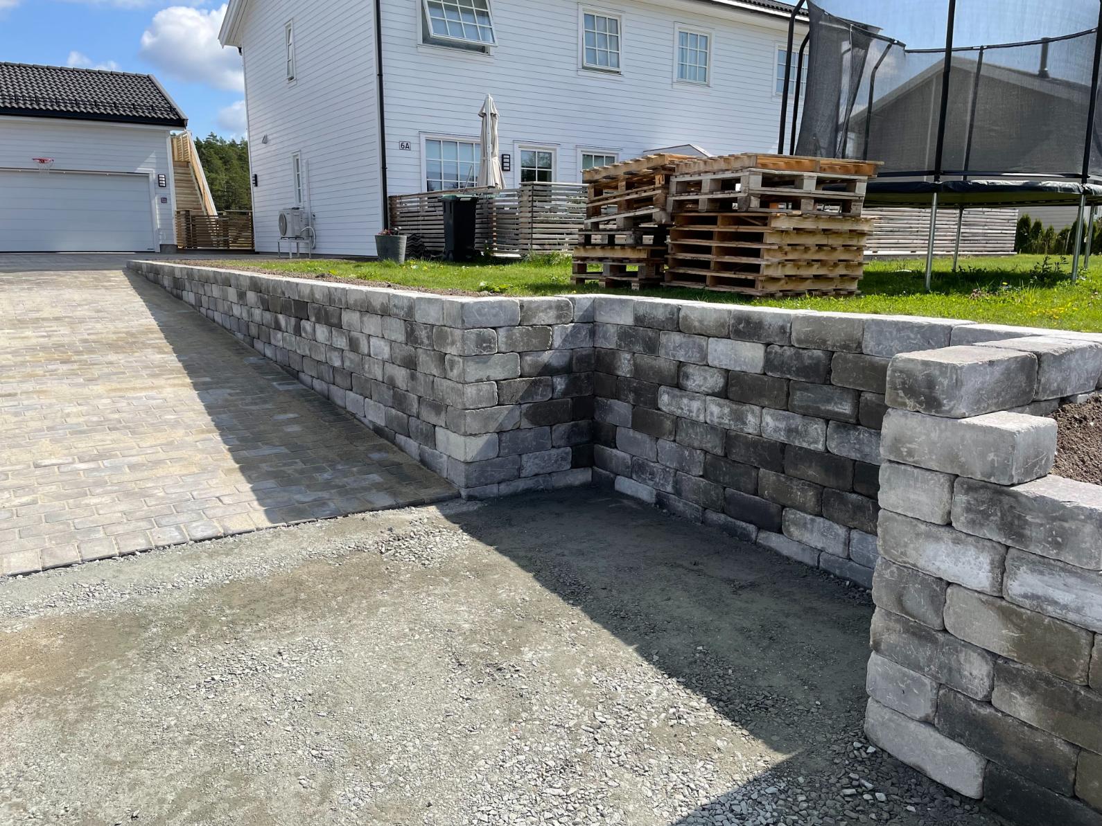 Vi bygger støttemurer av betongstein eller granittstein. Grunnarbeidet for en støttemur er viktig så her blir det ikke spart på noe. Bærelaget for støttemurene blir prosjektert i forhold til størrelse og vekt på støttemur.