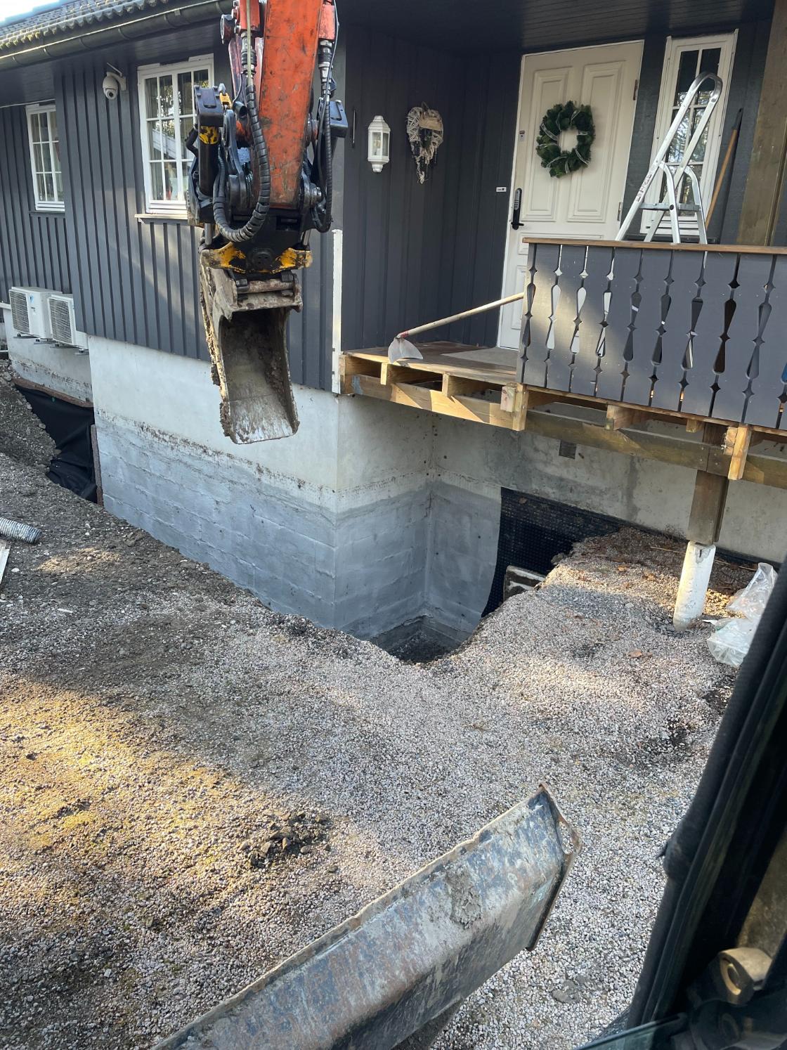Vi graver tomtene for deg! Et bra resultat krever godt grunnarbeid. Vi utfører alltid grunnarbeid i henhold til Norsk Standard og vi har lang erfaring innen faget!