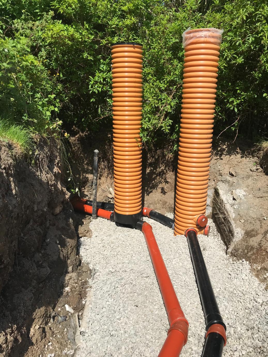 Vi bygger alle typer vann- og avløpsnett, både store og små. Vi kan hjelpe med prosjektering, dimensjonering og utregning, samt prissetting på det gjeldende prosjektet.